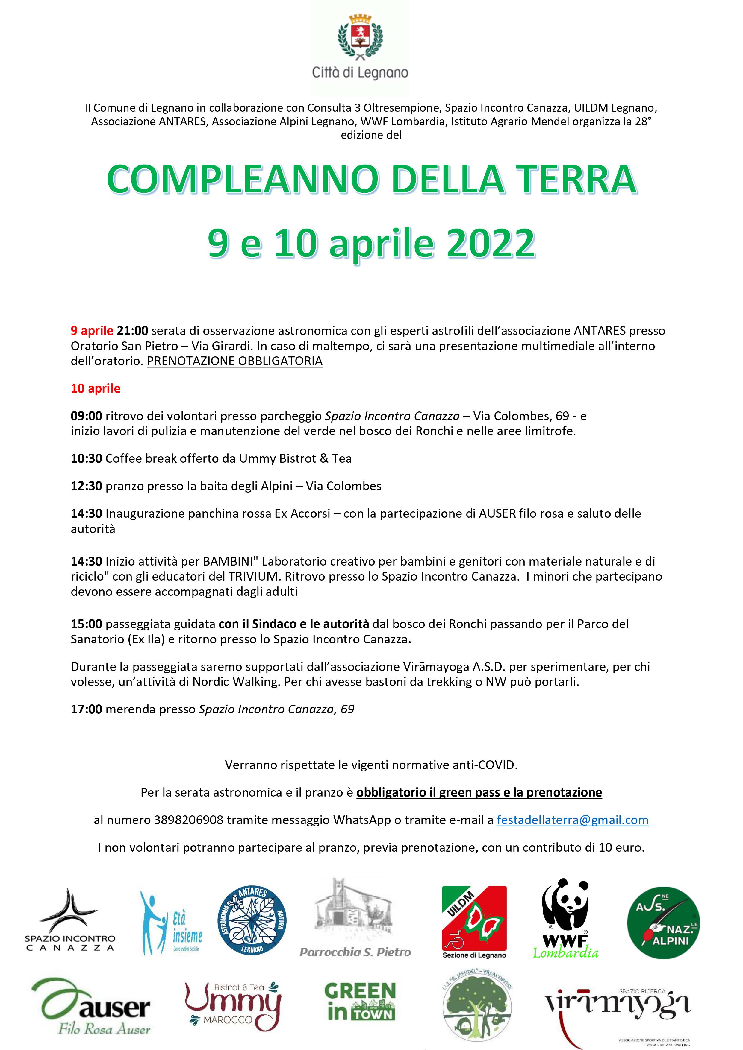 OGGETTO: Evento “Compleanno della Terra” – Legnano – 10 Aprile 2022